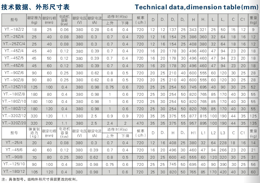 名稱:YT1系列電力液壓推動器